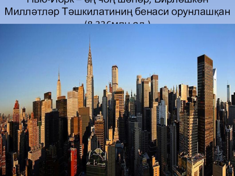 Слайд 22Нью-Йорк – әң чоң шәһәр, Бирләшкән Милләтләр Тәшкилатиниң бенаси орунлашқан (8,336млн.ад.)