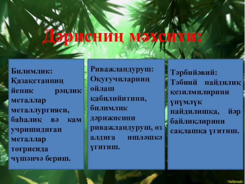 Тәбиий пайдилиқ қезилмилирини үнүмлүк пайдилишқа, йәр байлиқлирини сақлашқа үгитиш.