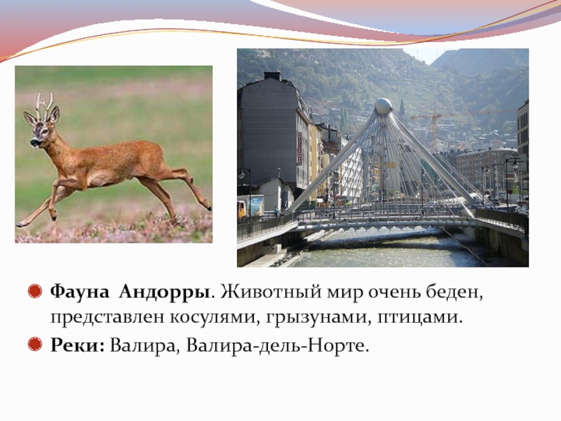 Слайд 13Фауна Андорры. Животный мир очень беден, представлен косулями, грызунами, птицами.