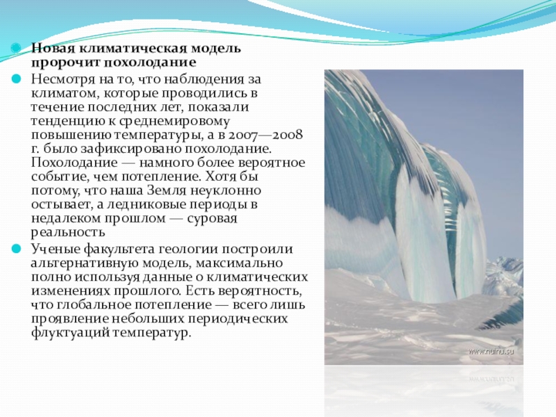 Слайд 21Новая климатическая модель пророчит похолодание