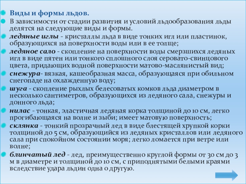 Виды и формы льдов.