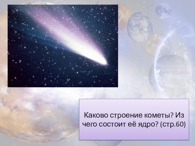 1.Движутся по вытянутым орбитам, то удаляясь, то приближаясь к Солнцу.