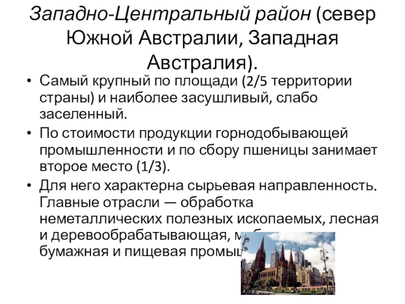 Слайд 20Западно-Центральный район (север Южной Австралии, Западная Австралия).