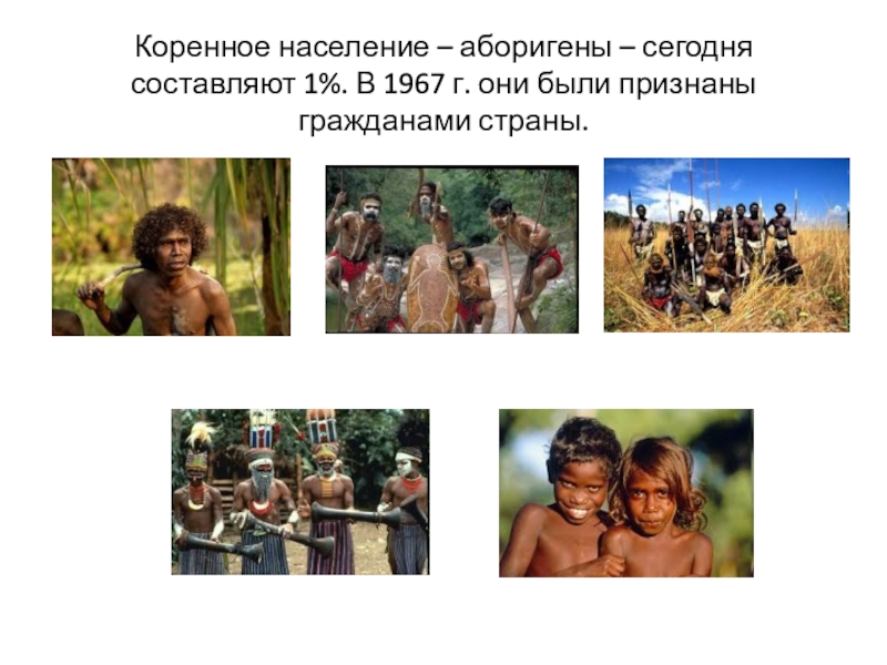 Слайд 9Коренное население – аборигены – сегодня составляют 1%. В 1967 г.