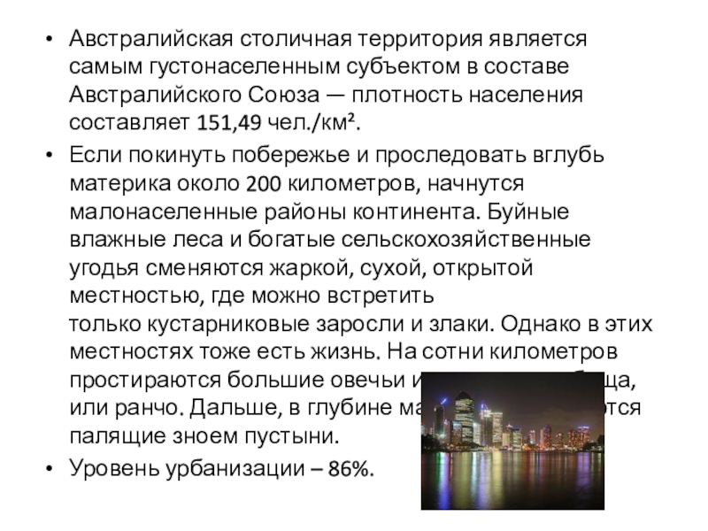 Австралийская столичная территория является самым густонаселенным субъектом в составе Австралийского Союза — плотность