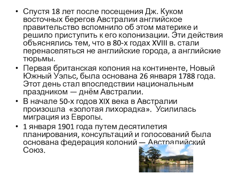 Спустя 18 лет после посещения Дж. Куком восточных берегов Австралии английское
