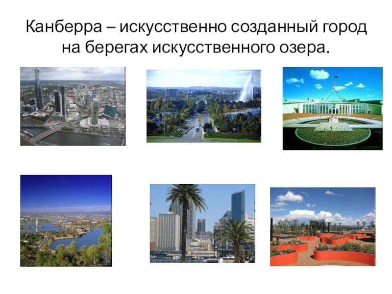 Слайд 11Канберра – искусственно созданный город на берегах искусственного озера.