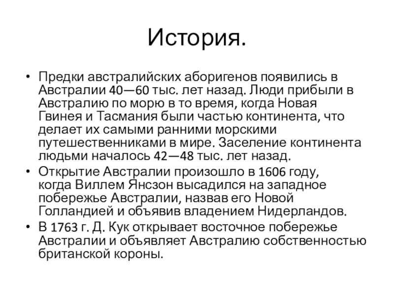 До конца XVIII века население Австралии составляли пришедшие 40—50 тыс. лет назад австралийские аборигены,островитяне
