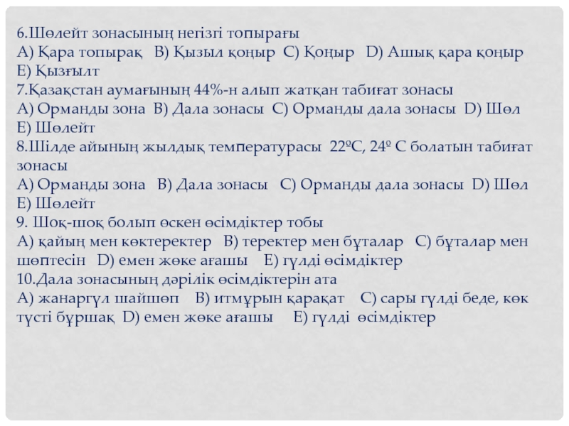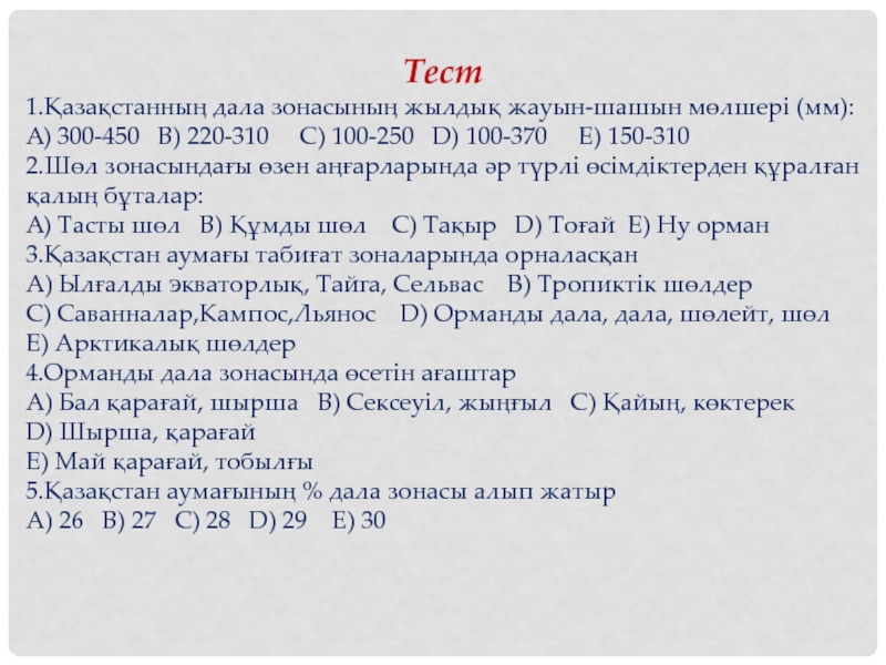 5.Қазақстан аумағының % дала зонасы алып жатыр