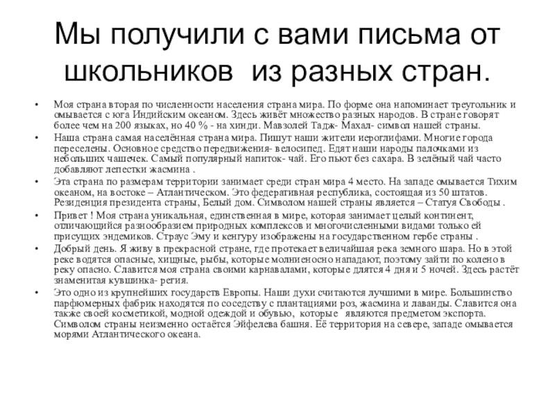 Слайд 15Мы получили с вами письма от школьников из разных стран.