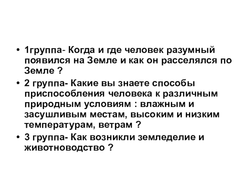 1группа- Когда и где человек разумный появился на Земле и как