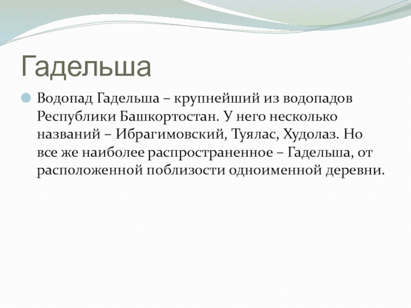 Водопад Гадельша – крупнейший из водопадов Республики Башкортостан. У него несколько