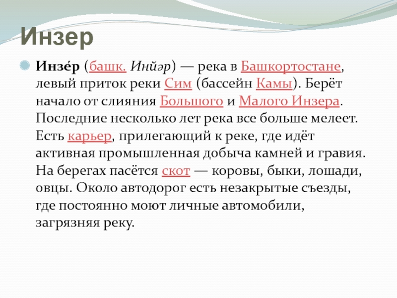Инзе́р (башк. Инйәр) — река в Башкортостане, левый приток реки Сим