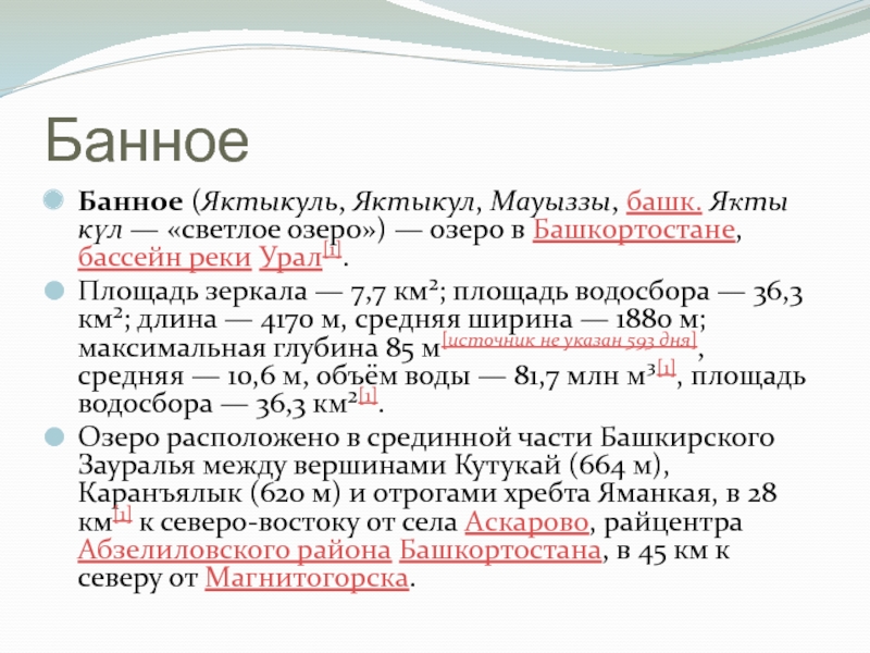 Банное (Яктыкуль, Яктыкул, Мауыззы, башк. Яҡты күл — «светлое озеро») — озеро в