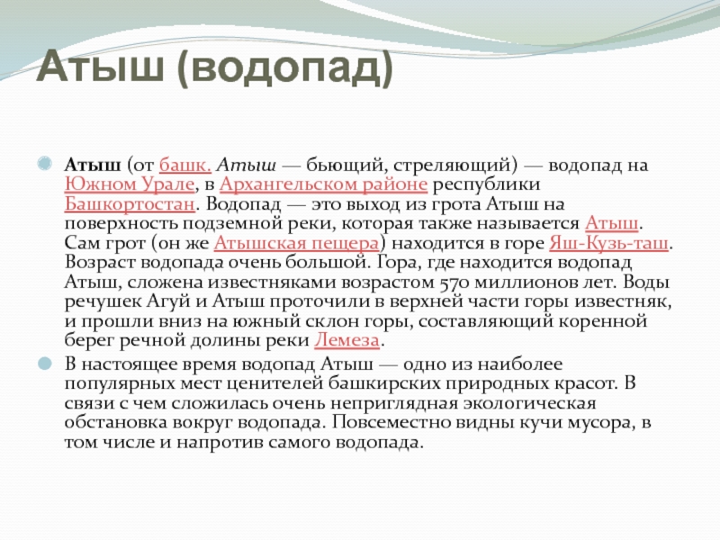 Атыш (от башк. Атыш — бьющий, стреляющий) — водопад на Южном Урале,