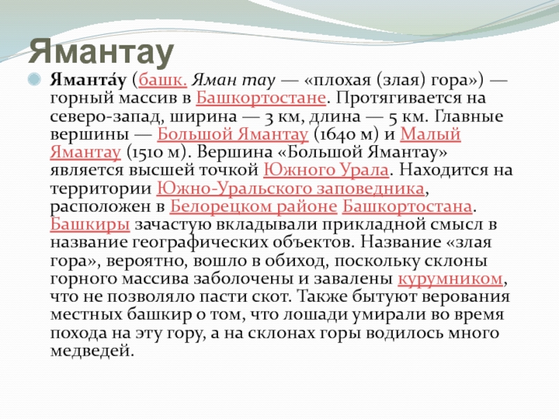 Яманта́у (башк. Яман тау — «плохая (злая) гора») — горный массив в Башкортостане.