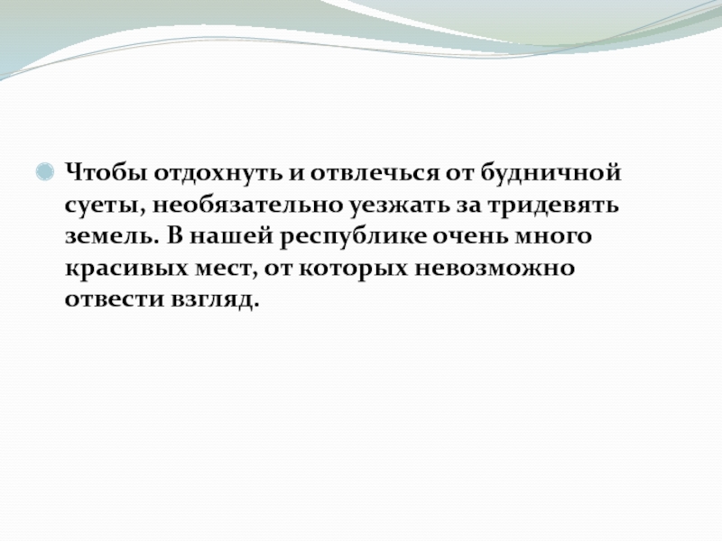 Слайд 2Чтобы отдохнуть и отвлечься от будничной суеты, необязательно уезжать за тридевять