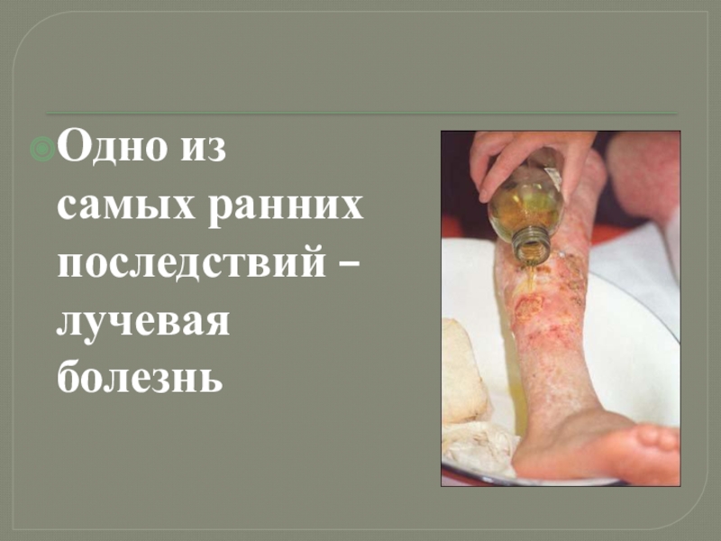 Слайд 36Одно из самых ранних последствий – лучевая болезнь
