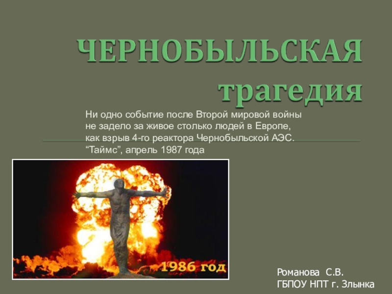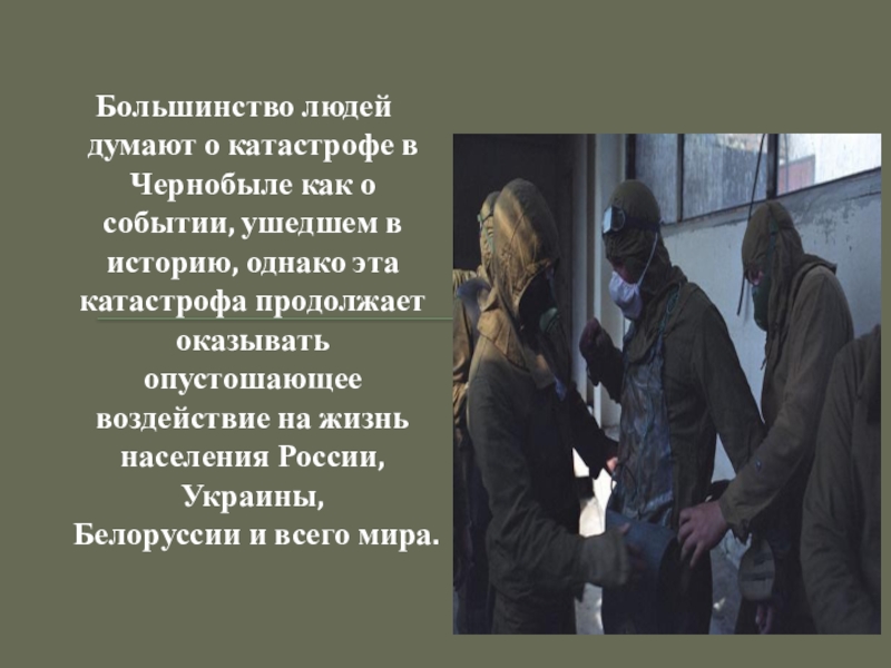 Слайд 3Большинство людей думают о катастрофе в Чернобыле как о событии, ушедшем