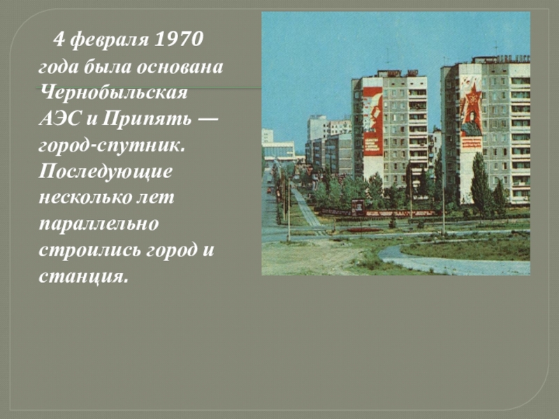 Слайд 8 4 февраля 1970 года была основана Чернобыльская АЭС и Припять —