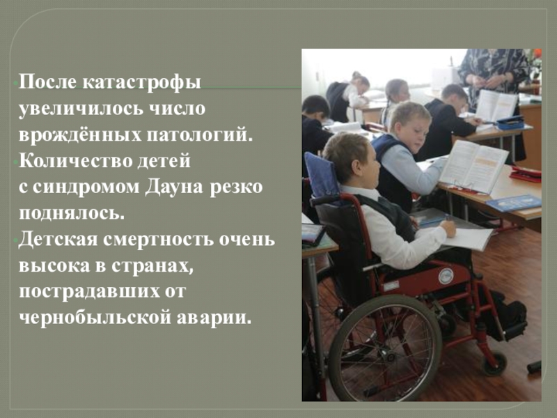 Слайд 38После катастрофы увеличилось число врождённых патологий.