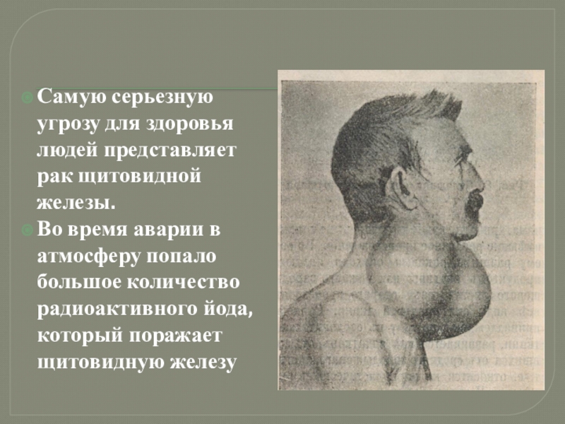 время аварии в атмосферу попало большое количество радиоактивного йода, который поражает щитовидную железу