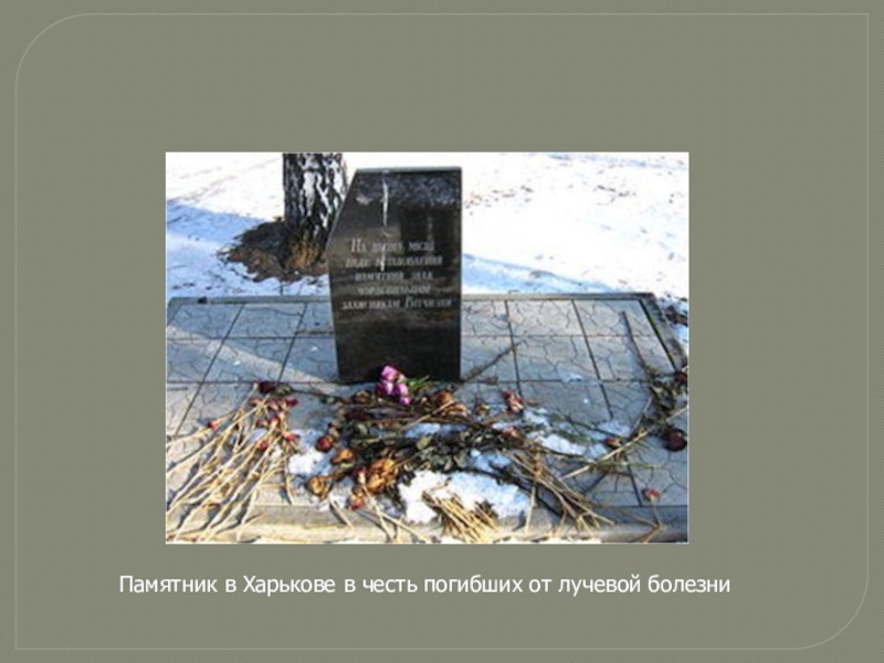 Слайд 39Памятник в Харькове в честь погибших от лучевой болезни