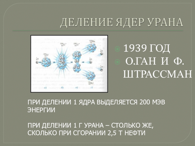 ПРИ ДЕЛЕНИИ 1 Г УРАНА – СТОЛЬКО ЖЕ, СКОЛЬКО ПРИ СГОРАНИИ 2,5 Т НЕФТИ