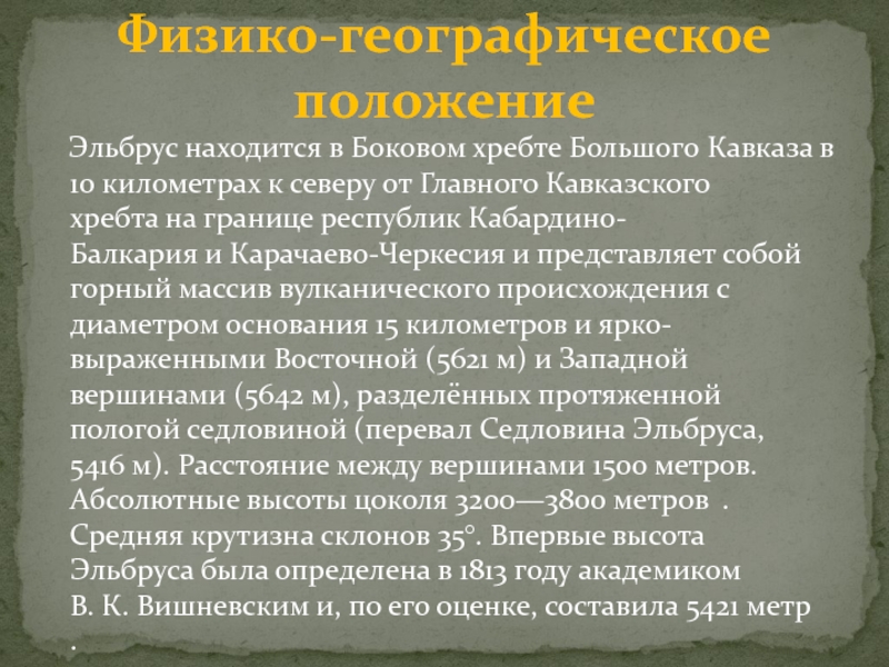 В 1934 году советскими альпинистами В. Корзуном и А. Гусевым на Эльбрус было совершено первое зимнее восхождение.