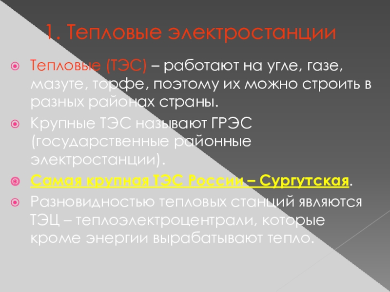 Крупные ТЭС называют ГРЭС (государственные районные электростанции).