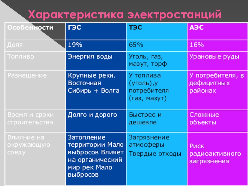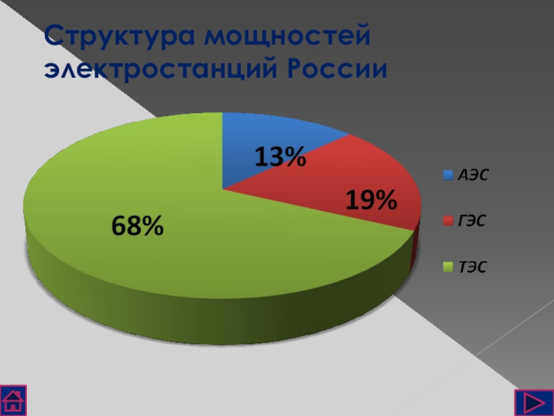 АЭС – работают на ядерном топливе (уран, плутоний). Доля