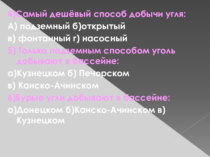а)Донецком б)Канско-Ачинском в)Кузнецком