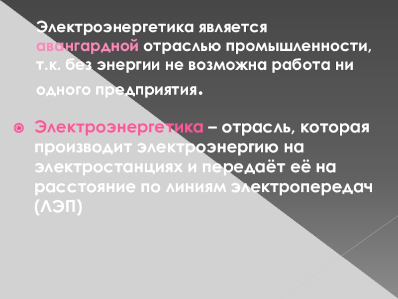 Слайд 7Электроэнергетика является авангардной отраслью промышленности, т.к. без энергии не возможна работа