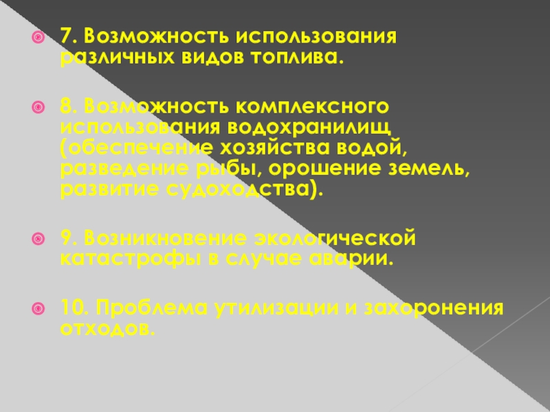 8. Возможность комплексного использования водохранилищ (обеспечение