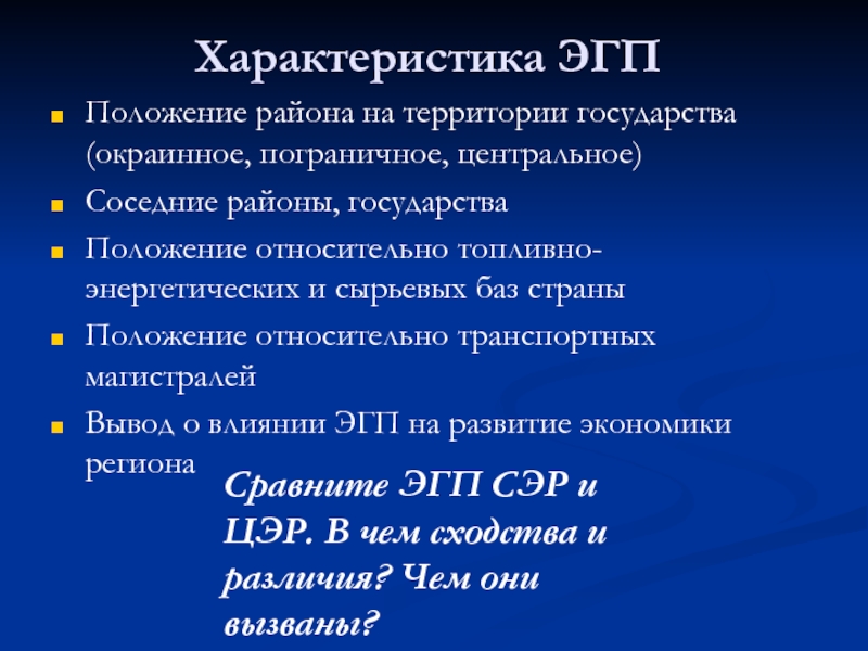 Сравните ЭГП СЭР и ЦЭР. В чем сходства и различия? Чем они вызваны?