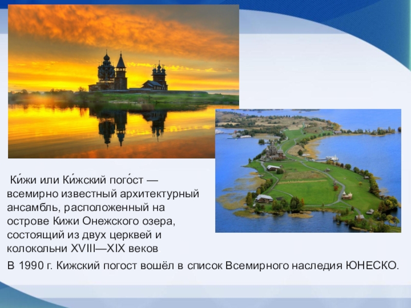 В 1990 г. Кижский погост вошёл в список Всемирного наследия ЮНЕСКО.