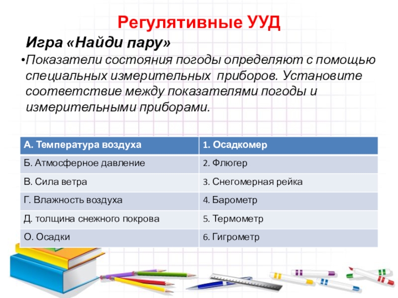 Показатели состояния погоды определяют с помощью специальных измерительных приборов.