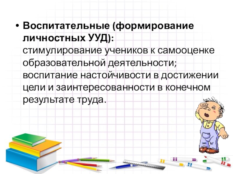 Слайд 41. Задаются ценностные ориентации, доминирующие установки и смыслы всему процессу обучения.