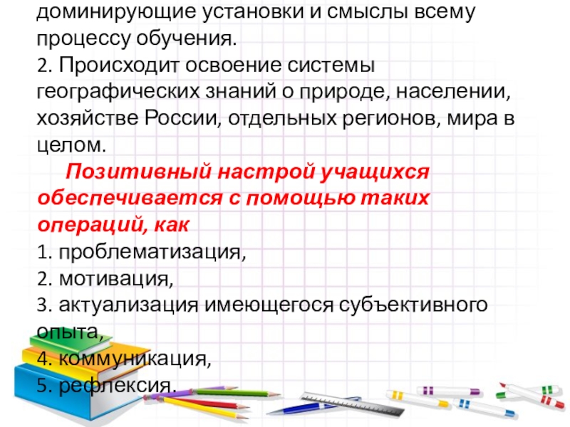 Позитивный настрой учащихся обеспечивается с помощью таких операций, как