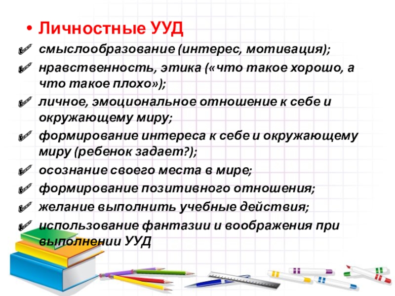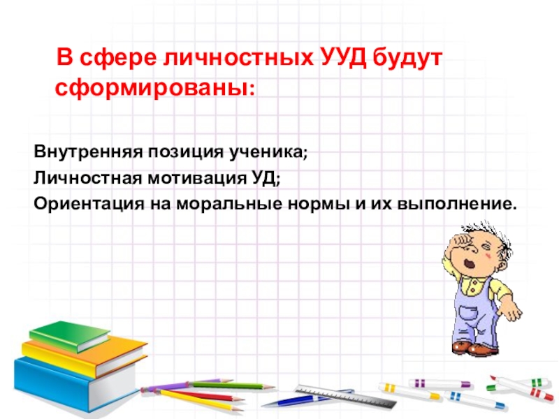 Слайд 9 В сфере личностных УУД будут сформированы: