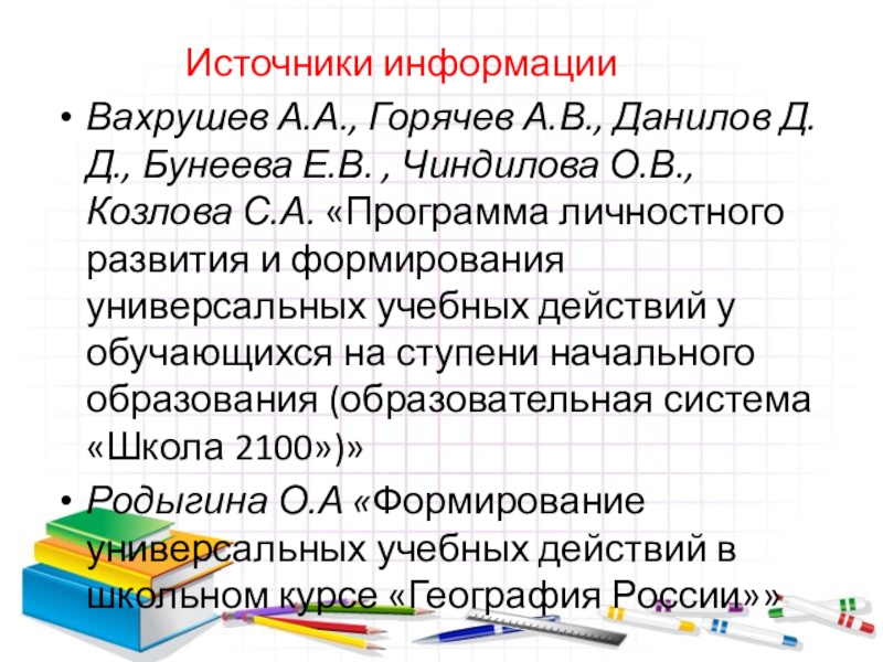 О.В., Козлова С.А. «Программа личностного развития и формирования универсальных учебных действий у обучающихся на ступени начального образования (образовательная система «Школа 2100»)»