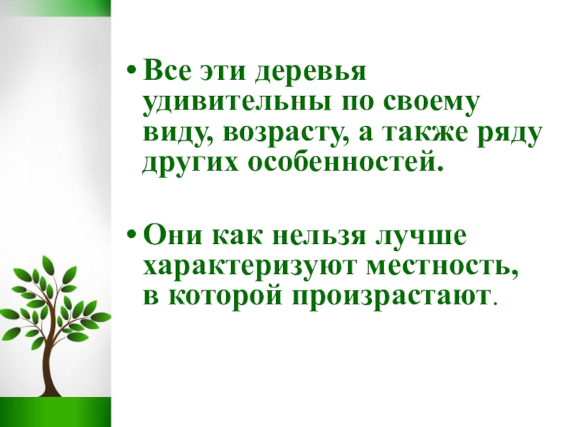 Слайд 3Все эти деревья удивительны по своему виду, возрасту, а также ряду