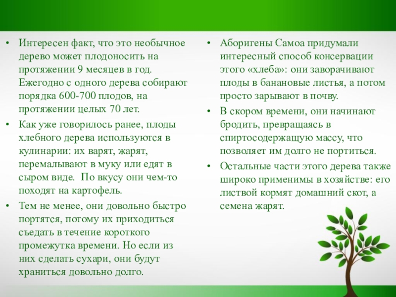 Слайд 15Интересен факт, что это необычное дерево может плодоносить на протяжении 9