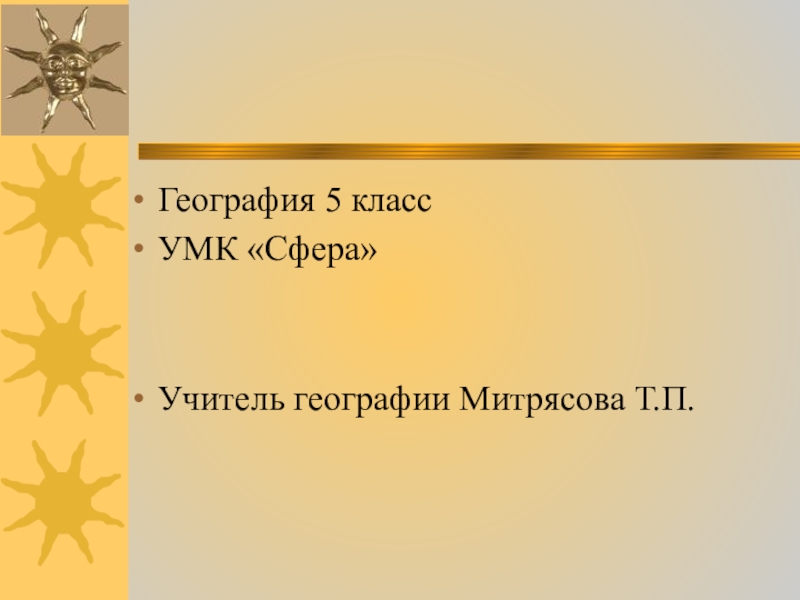 География 5 класс УМК «Сфера»Учитель географии Митрясова Т.П.