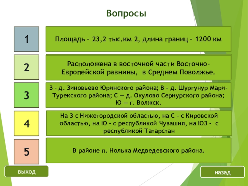 На З с Нижегородской областью, на С – с Кировской областью, на Ю – с республикой Чувашия, на ЮЗ - с республикой Татарстан