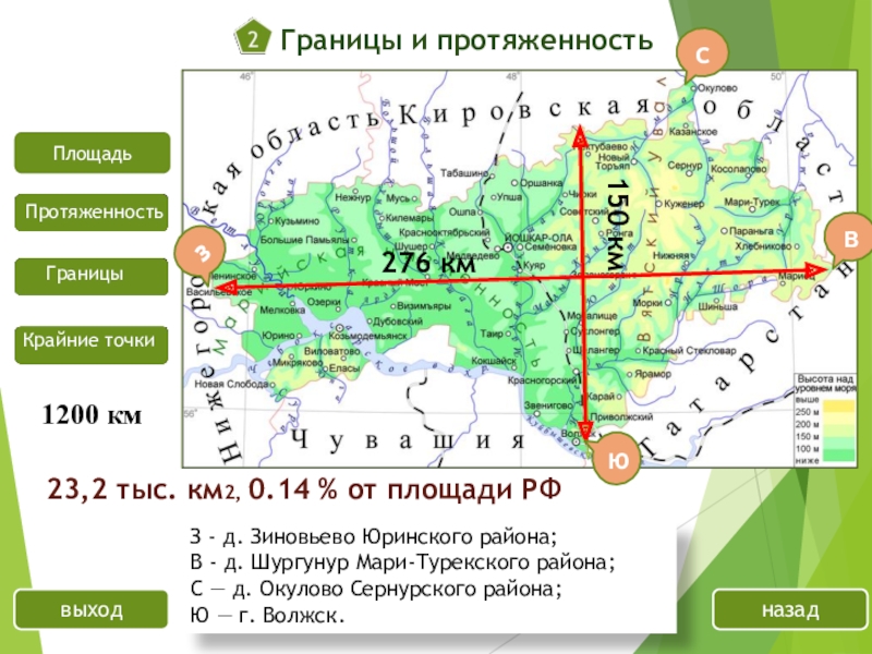 З - д. Зиновьево Юринского района; В - д. Шургунур Мари-Турекского района; С — д. Окулово Сернурского района; Ю — г. Волжск.