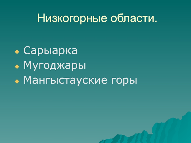 Низкогорные области.СарыаркаМугоджарыМангыстауские горы