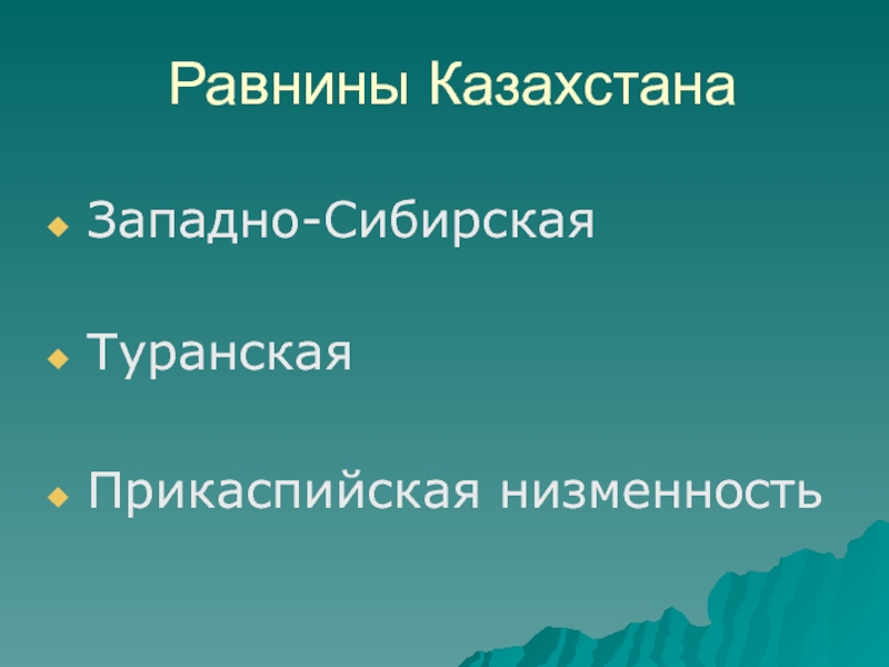 Равнины КазахстанаЗападно-Сибирская ТуранскаяПрикаспийская низменность