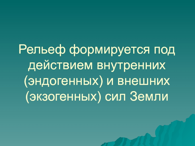 Слайд 5Рельеф формируется под действием внутренних (эндогенных) и внешних (экзогенных) сил Земли