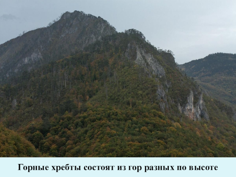 Слайд 4Горные хребты состоят из гор разных по высоте
